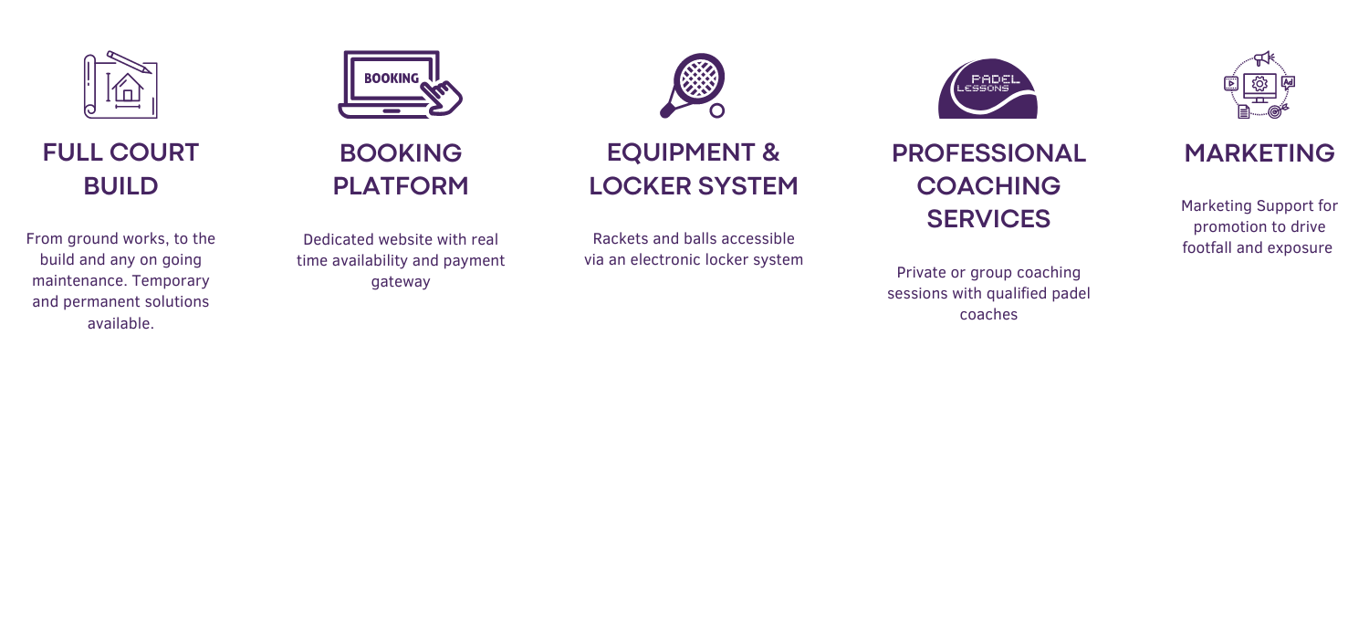 GHS acquired padel courts and leveraging unrivalled industry expertise and its global reach, can supply, install and manage padel courts across the world.